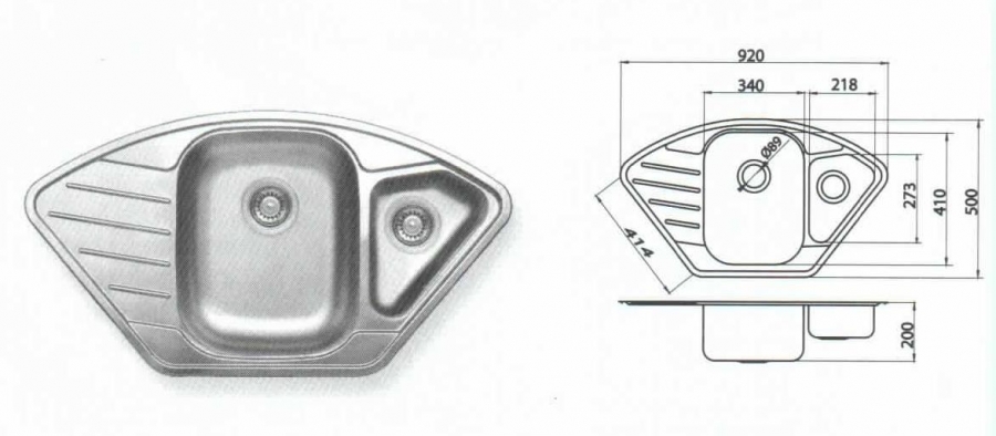 Dřez nerez rohový 1+1/2 s odkp.plochou